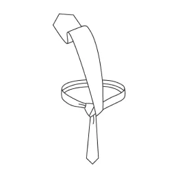 7. Перекиньте широкий конец влево, просуньте его вверх за петлей и засуньте в образовавшуюся петлю. Затяните, потянув за широкий конец и сдвинув узел другой рукой, чтобы отрегулировать. |