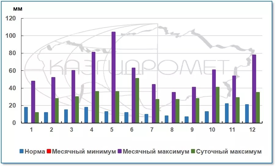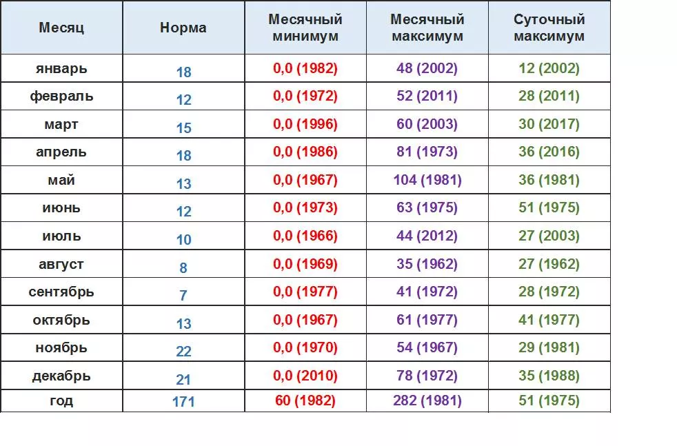 Нормы количества осадков рассчитаны за период 1991‑2020 гг. Суточные данные: взяты за период 1960-2021 гг.