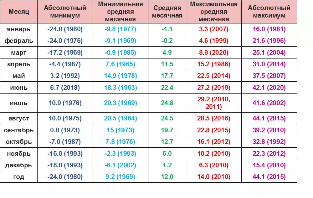 Месячные рекорды погоды: определены по ряду данных месячного разрешения за период с 1960 по 2021 гг.