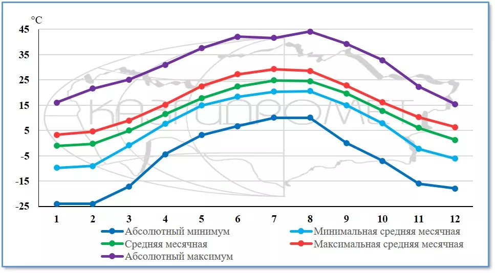 Характеристики температуры воздуха в Актау, °С