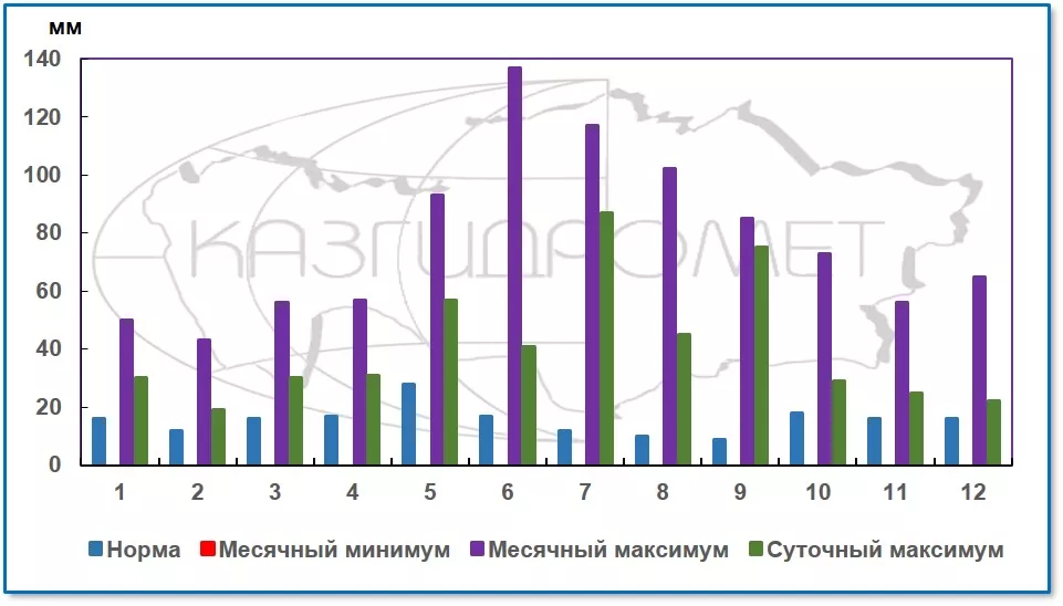 Месячная сумма осадков в Атырау