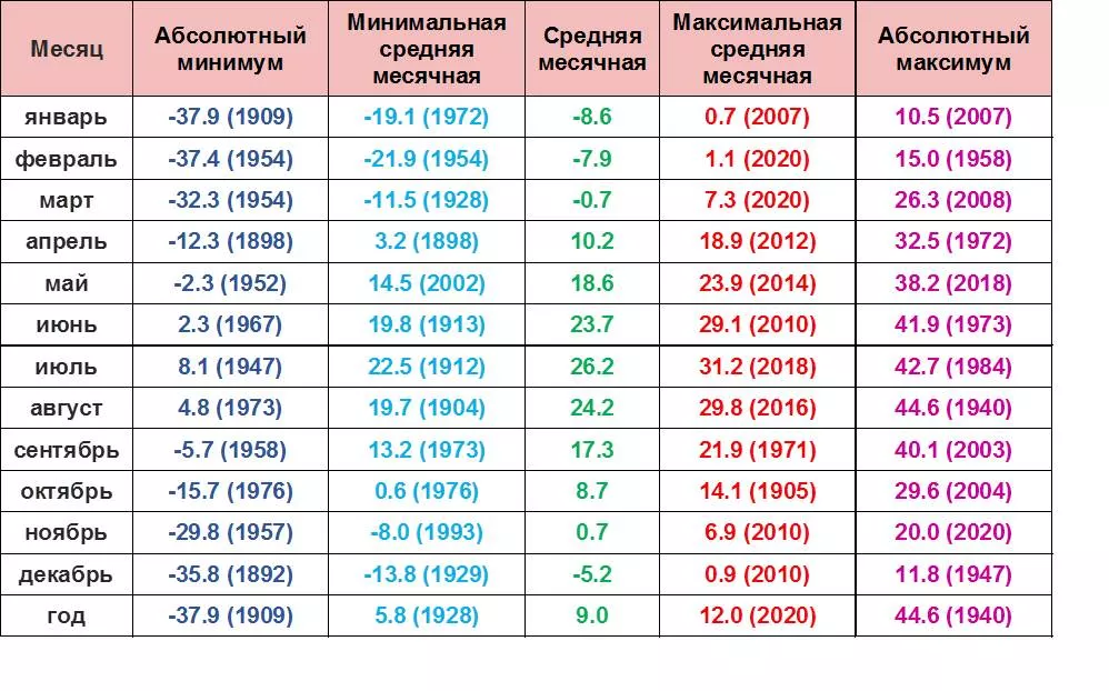 Месячные рекорды погоды: определены по ряду данных месячного разрешения за период с 1881 по 2021 гг.