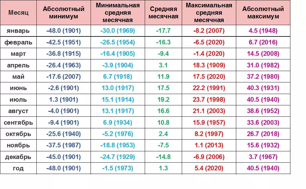 Месячные рекорды погоды: определены по ряду данных месячного разрешения за период с 1890 по 2021 гг.